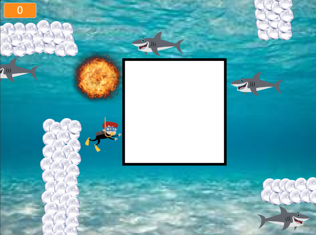 game about killing all shark by placing the bomb in their path, don’t touch the shark or the bomb or you lose