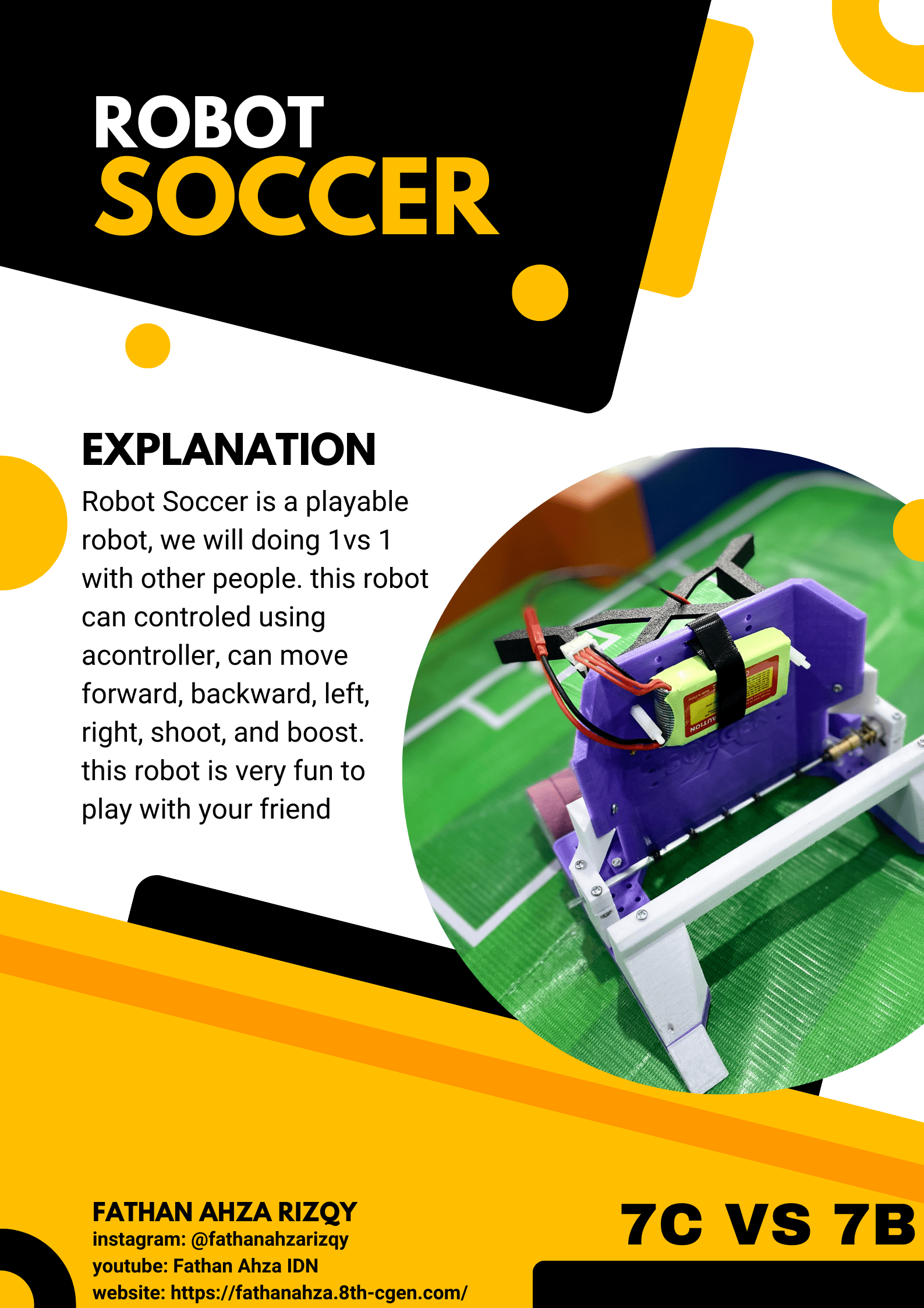 In this project i doing 1 vs 1 with 7B, we play Soccer Bot, and the goal is to score one goal to the enemy