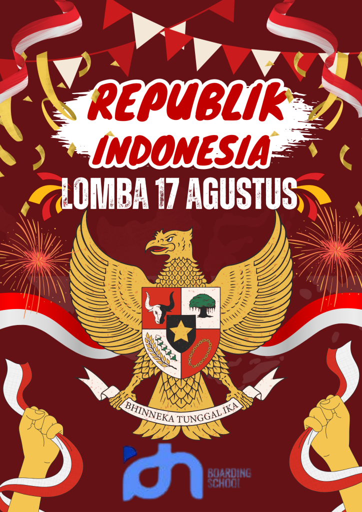 i make this poster with canva website and i take some items like bird, flag red and white, fire works, the hand, and other item from template, this poster is about indonesian national day and indonesian national day is 17 august on 1945.